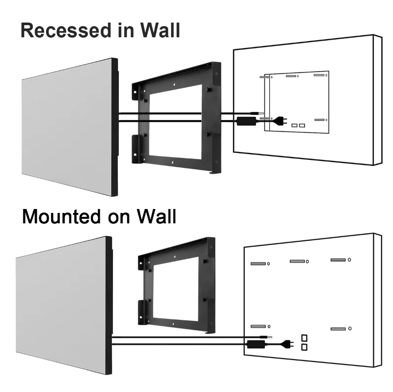 For the models that are designed to be installed and recessed into your wall. It therefore requires a cavity to be cut into your wall, with size of cavity depend on the size of television you purchase. It is recommended that power and input cables are made available adjacent to the cavity opening inside the cavity. This will give you a seamless looking installation.